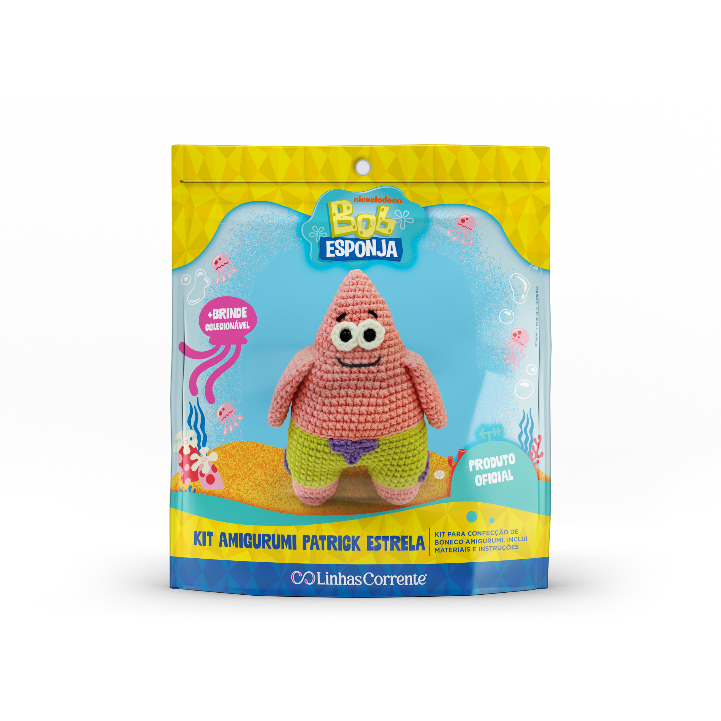 O kit traz todos os materiais e um passo a passo detalhado para você dar vida ao melhor amigo do Bob Esponja, com sua cor rosa vibrante e bermuda florida superestilosa.